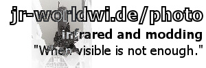 So, to protect me and my mailbox, you have to manually type in my email address: ![]() To link to my site, you can use plain text (that's what I use - I don't like banners...) or the following code: <a href="http://www.jr-worldwi.de/photo/" target="_blank"> <img src="http://www.jr-worldwi.de/photo/banner2.png" width="300" height="100" border="0" alt="jr-worldwi.de/photo = IR and modding"> </a>to yield this link: ![]() FAQPlease note that if you ask questions that could better be answered elsewhere on my page, I'll do it there. To obtain my email address, just visit my contact page.