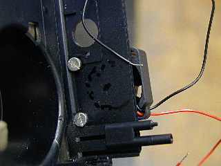 Now hold the cooling fan onto the base of the Olympus. The small edge created by the tripod mounting area can work as a guide for placing the fan. Mark the spot where the two front holes will be drilled. Guesstimating where the air intake will be, mark where you want to drill some more holes.