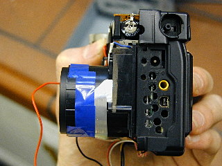 Doing it like this the door can be closed for some kind of protection and opening the door will not create a write error. However, I must confess one huge disadvantage: The fan will blow dust into the camera. The CCD chip is fairly well shielded by a rubber seal but this modification clearly takes something away from the sturdiness of a normal C-x0y0 Zoom.