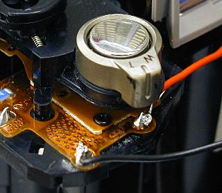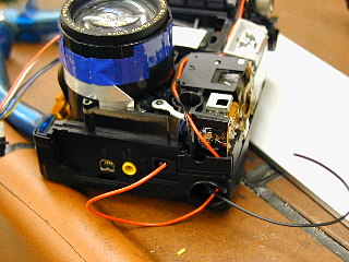 Please note that it is beneficial to route both wires to the back of the camera. The red wire here is ok, the black one should point the same way as the red. This makes re-assembly easier.